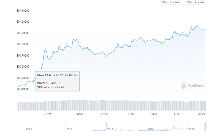 The XRP token is trading near the $0.4 mark. Its market capitalization is $19 billion with a daily trading volume of about $2.4 billion, according to CoinGecko. The share of the token in the cryptocurrency market is 2.2%.